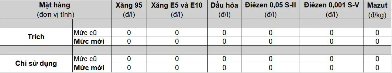 Theo văn bản số 2291/BCT-TTTN ngày 02.4.2026 của Bộ Công Thương về việc điều hành kinh doanh xăng dầu, mức trích lập và chi sử dụng Quỹ bình ổn giá xăng dầu (BOG) từ 23 giờ 30 phút cụ thể như sau